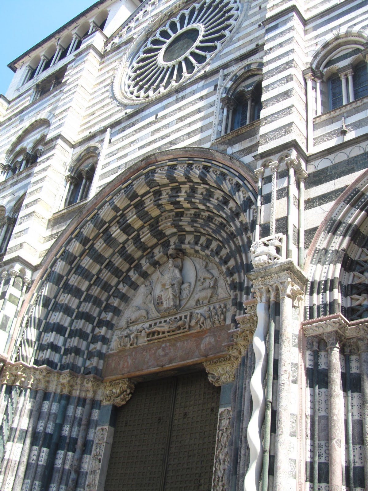 La Cattedrale di San Lorenzo, in marmo bianco e nero (sempre ricordando i colori della nobilita’ genovese) con dei grossi leoni alla sua entrata.