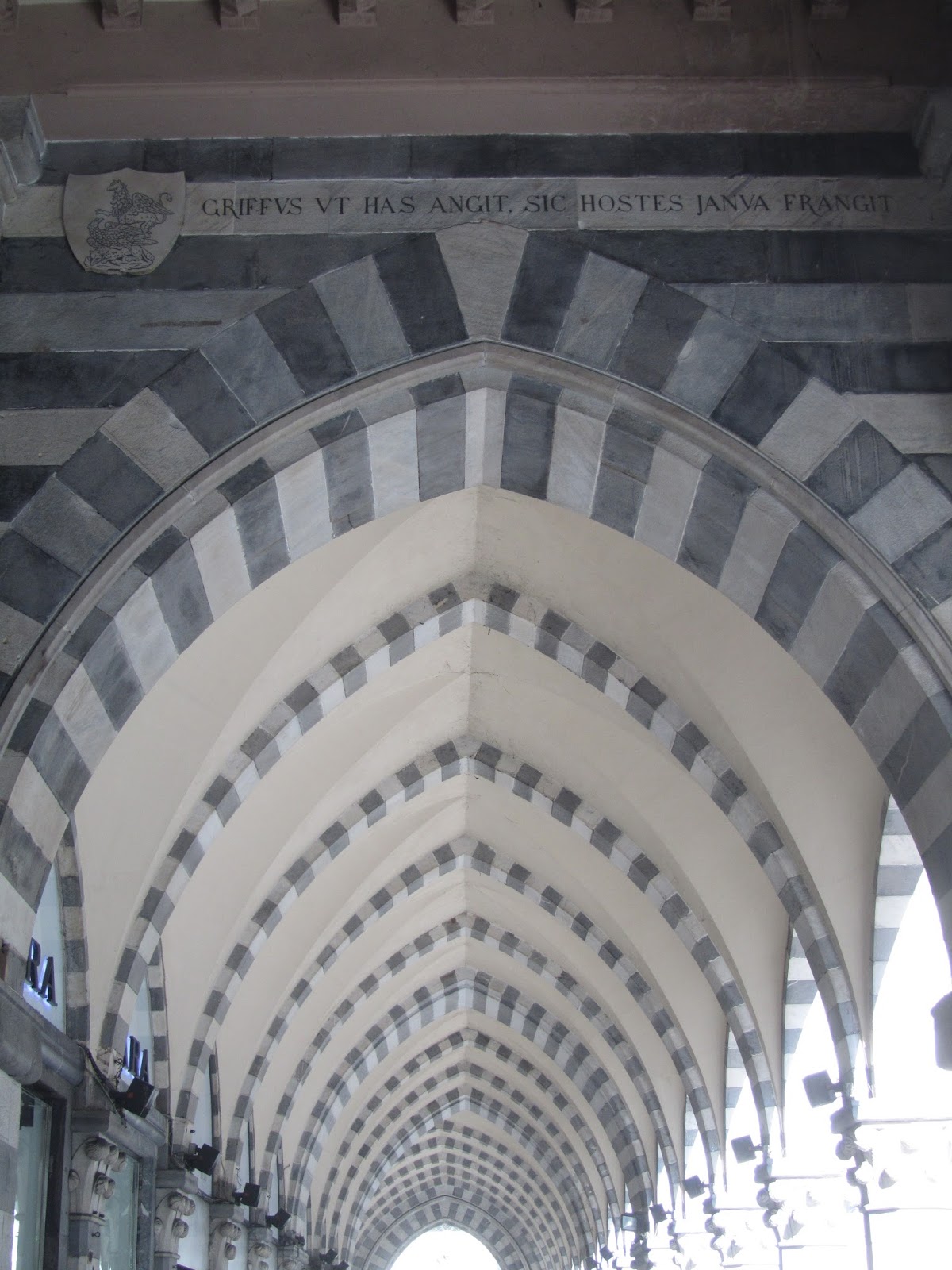 Genova -il colore “bianco e nero”, sotto i portici, e’ da attribuirsi alla passata nobilta’ genovese